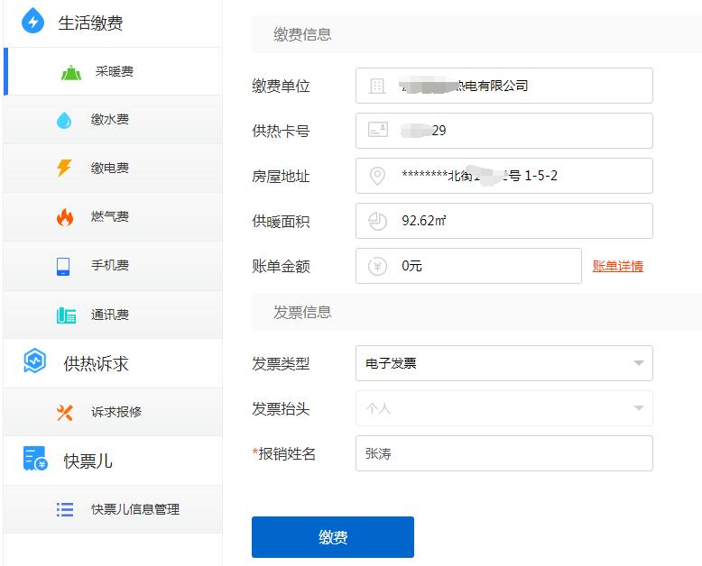 - 绑卡后,选卡,进行缴费,有历年欠费的用户,根据供热公司规定进行缴费,选择开发票方式。