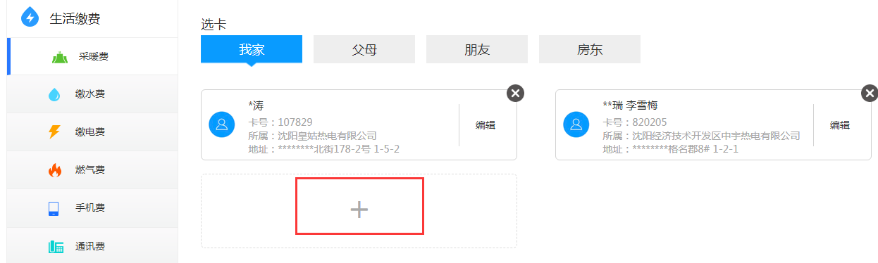- 首先绑定供热卡号,一个用户最多可绑10张供热卡,自行分组。共分:供热卡号、小区楼号、房屋地址、房屋编号这4种绑定途径。